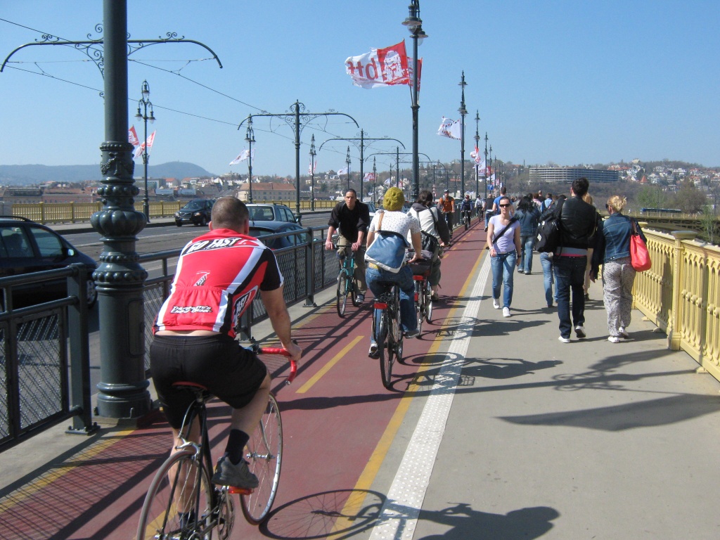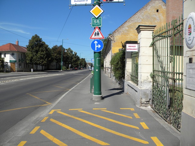 Azt sem ismeretlen, hogy a kerékpárosként sem túl élvezetes a terén a gyalogosokat kerülgetni a töredezett aszfaltos semmiben végződő gyalog-kerékpárúton.