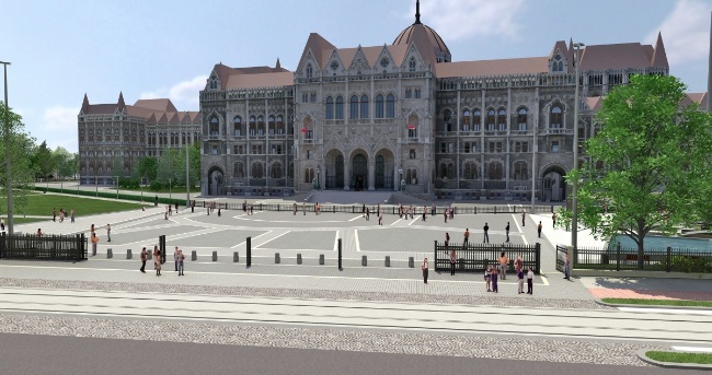 A minőségi terven viszont továbbra is gyalogosoktól hemzsegő, semmiben végződő piros járda látszik. Bár jól mutatja a terv valóságot tükrözni kívánó világát, hogy a villamos is csak egy vágányt kapott.