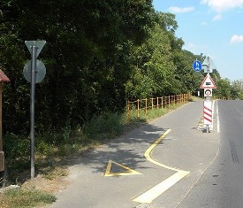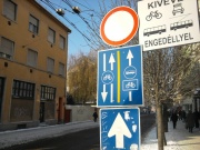 Minden tiltakozás és józan érv ellenére épült bringagyász a szegedi Kálvária sugárúton. Benne villanyoszlopok sora, KRESZ-táblák, a gyalogos rész 80 cm, egyetemi épületek között. A villamospálya zárt lett, bicikliseket a közúton így nehéz előzni. A következtetést levonta az újság: a szabálytalan biciklisek miatt lassul a forgalom.