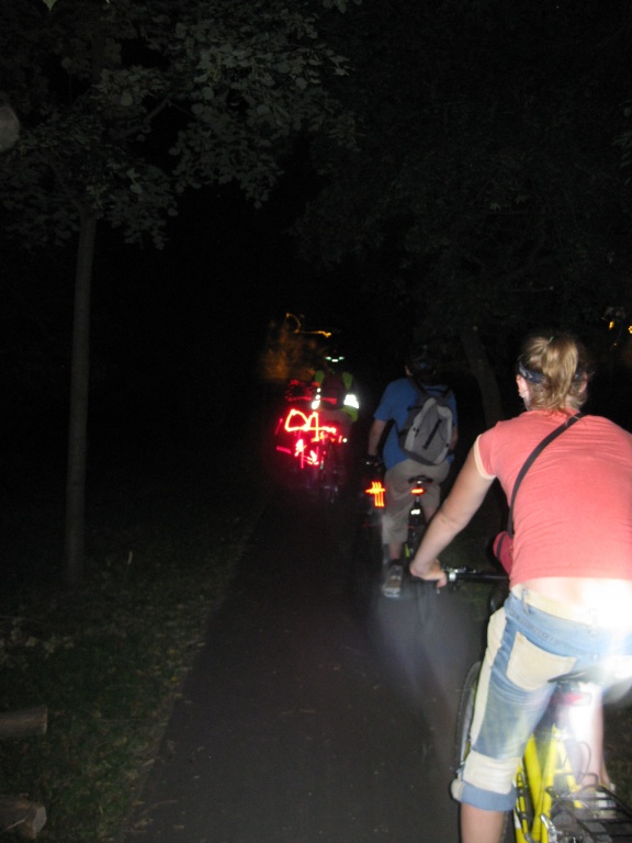 Ha valakinek majd kedve támadna csatlakozni eme éjjeli bagoly társulathoz, azt megkérném tisztelettel, hogy kivilágítva tegye majd mindezt. Bár megoldott, hogy közrefogjuk és úgy megyünk, de nem árt, ha van a bringán ami világítson.