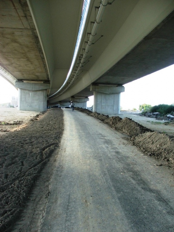 A táblázással várjuk meg a híd átadását (még két hét). Ez csak nyílt nap volt. Az autós szakaszon is vannak még hiányosságok: vápa bitumenezés, szalagkorlát szerelés, stb.