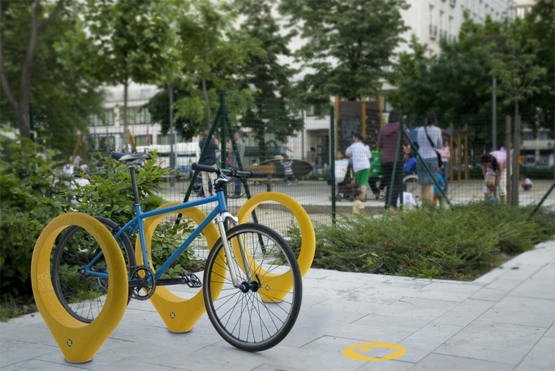 Az az utcabútor, amelyik gondolom bicajlakatolásra van szánva, nekem nem tetszik, és nem is praktikus (szerintem kisebb U-lakatok nem fognák át). Sokkal fantáziadúsabb kerékpártárolókat is láttam, inkább úgy érzem, a sárga-ovális koncepció rá lett erőltetve az alkalmazásra.