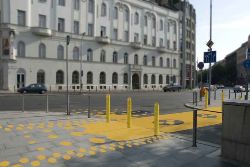 Koncepciónak érdekes, de a burkolati jelek és táblák szabványosak, poénból újra lehet őket tervezni mint művészeti projekt, de sok értelme nincs.