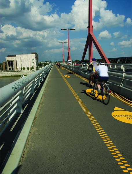A festékkel pedig nem szabad spórolni, ha arról van szó, hogy azzal felhívhatjuk a figyelmet a kerékpárutakra, ezzel baleseteket előzve meg.(ott vannak példának a koppenhágai telikék berékpárutak)
