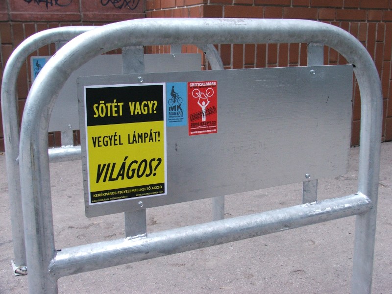 A minap a Margitszigeten jártam, ahol örömmel láttam, hogy a nemrég felszerelt kerékpártárolók fém lemezeket kaptak a keret belsejébe. Nem tudom, hogy ezt amolyan dekorációnak szánták a tervezők, de szöget ütött a fejembe, hogy ezeket a felületeket milyen jól lehetne hasznosítani különféle kampányok szervezésekor.