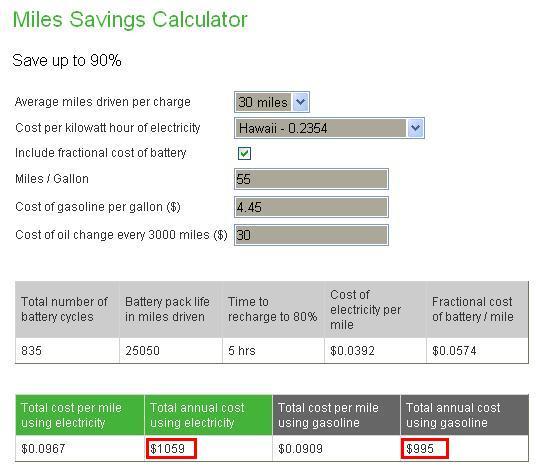 Végül találtam egy amerikai oldalt ahol van egy kalkulátor amivel össze lehet hasonlítani egy elektomos autó költségeit egy hagyományossal.