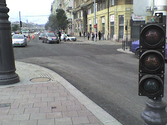 Ja, ezeket már én is néztem. Pl. jössz a Vámház krt-on a híd felé, és a sáv szépen felvezet a járdára. Gyönyörű :(