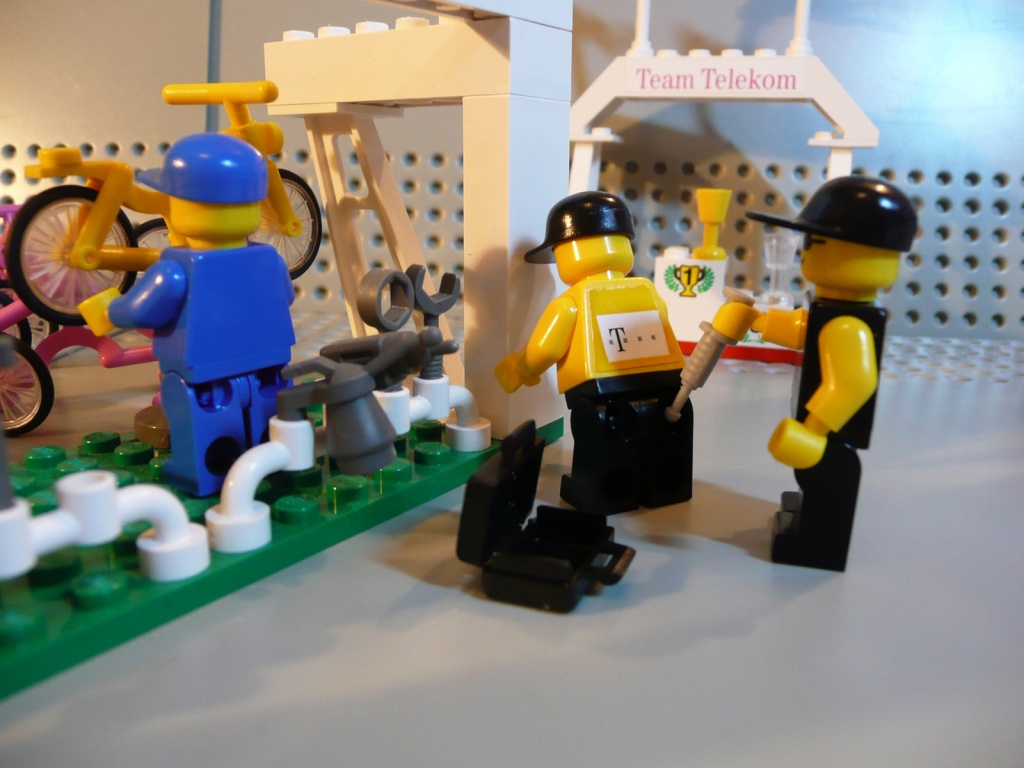 A dioráma a 2000-ben kiadott Team Telekom promóciós Lego sorozat tagjaival készült.