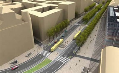 Az egy dolog, hogy mi van a látványterven, meg hogy mi valósul meg! Elvileg 2 sávos lesz a Dohányig az Astoria felől, utána elveszi a 8 méter széles a villamosok közti fasor, járda a helyet.