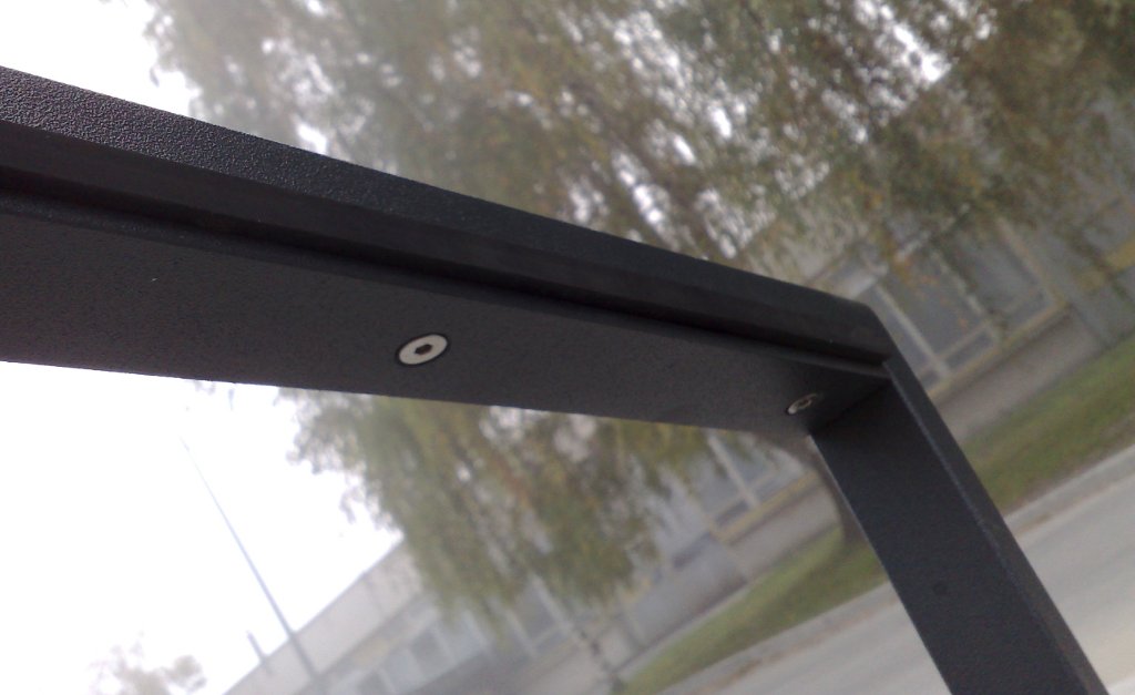 A képeken nem látszik, de a technológia kerékpár-festés barát: a zártszelvény ferde részénél egy széles gumicsík van rögzítve, hogy ne karcolódjon a váz. A fotók hétvégiek, átadás előtt, hétköznap szépen tele vannak már.