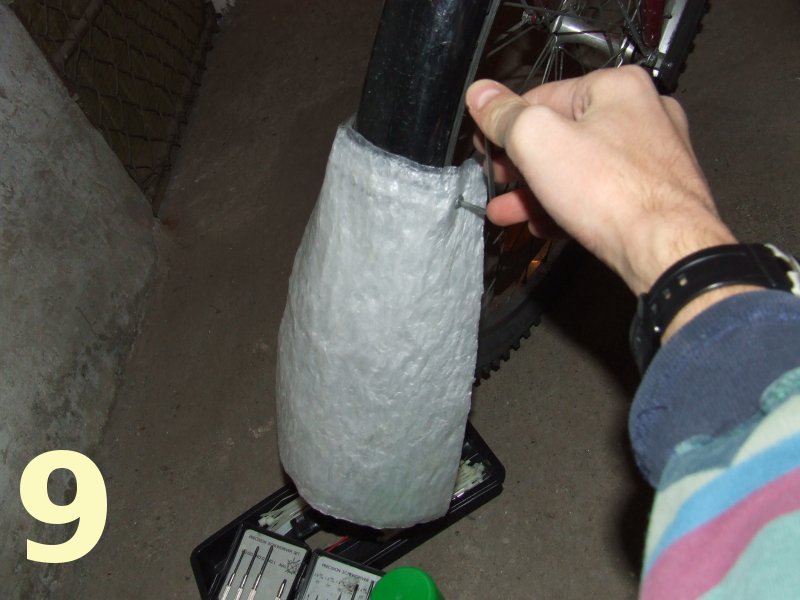 Köszönöm az ötletet elfrolandnak a Végigbringázom a telet I. fórumban! Nekem ugyanis nincs otthon semmilyen ipari hulladék, és sárvédőt fúrni sem akartam.