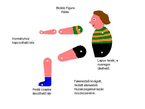 A technikai részről alap elképzelésem az, hogy a kis biciklik kerekei foroghatnának és a kormány mozoghat is, ha olyan igényes a kivitelezés. De lehetnek ezek merevek és szimbolikusak, amint más kis játékfigurák is olyanok, hiszen a gyermek képzelete önthet abba életet.