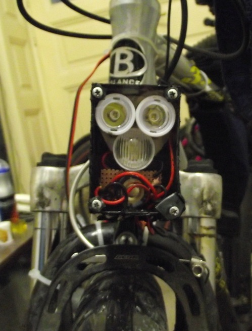 3 db. Cree XR-E R2 leddel raktam ossze a rendszert, amik max. 0,8A koruli aramot birnak, igy 0,5A korul optimalisan mukodnek.