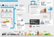 A GCP olyan tényezőket vett figyelembe, mint a kerékpárgyártás, a kerékpárok és kerékpárkiegészítők értékesítése, valamint a kerékpározáshoz kapcsolódó munkahelyek. Az eladások 28%-os növekedésének hála 3.7 millió új kerékpár talált gazdára 2010-ben, 1.62 milliárd fontos bevételt termelve. A 2.9 milliárd font maradék részét a kerékpáros kiegészítők és kerékpárkarbantartás (853 millió font), a kerékpározáshoz kapcsolódó munkahelyek (25000 ember, akik 600 millió font bért és adót termelnek), és a csökkenő munkahelyi hiányzás (128 millió font).