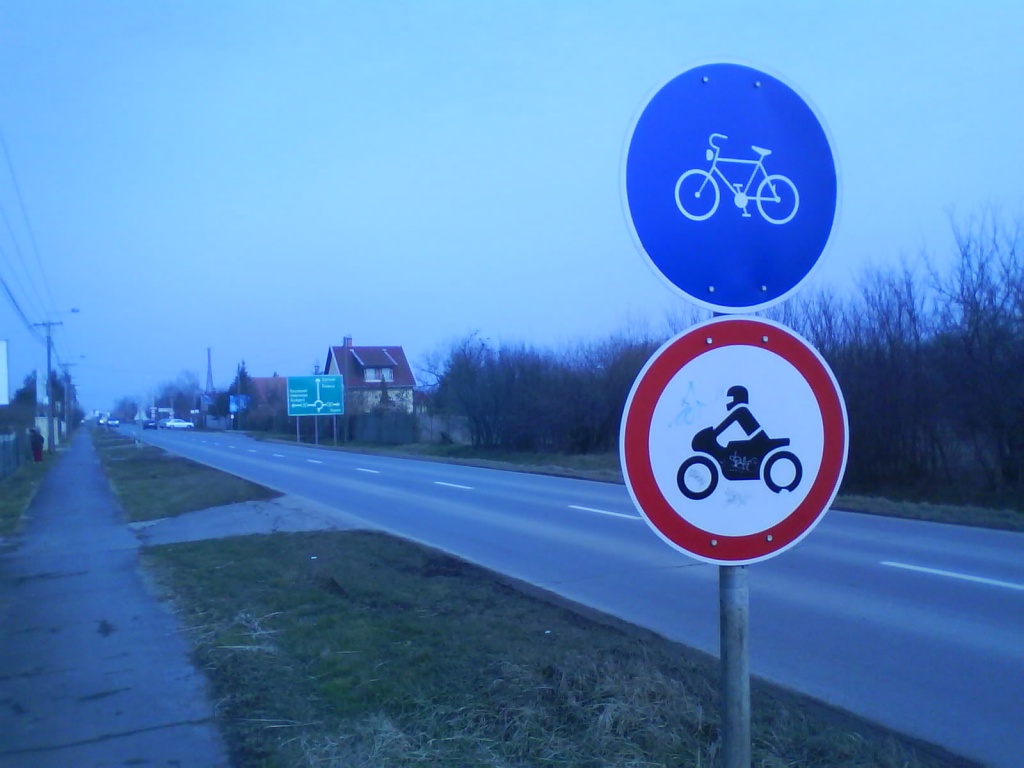 Mi ezzel a bajod? kerékpárút. Motorozni tilos. Gyalogolni meg szabad, mert ahol járda nincs ott