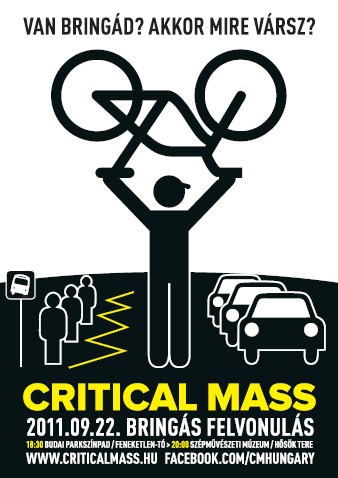 Szombaton és vasárnap teljes hosszában lezárásra kerül, és korzóvá alakul az Andrássy út, rengeteg programmal. Ezt az alkalmat kihasználjuk Critical Mass matricák osztogatására. Ehhez önkéntesekre lenne szükségünk Kükü mellé, délelőtt 10 és 18 óra között. Lehet 1-2 órára is, vagy csak fél órára leváltva a fáradtakat, mikor épp arra korzózol. Találkozó: szombat és vasárnap 10:00, Oktogon.