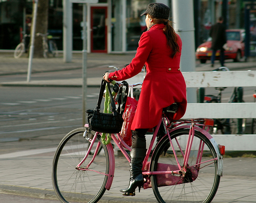 "A szoknya közepére felvarrt patent segítségével az alkalmi ruha egy mozdulattal közlekedésre alkalmas lesz, amelyet nem fúj a szél a biciklis arcába. A hosszú ruhát fel lehet csomózni, a stólát is meg lehet szelídíteni. A hűvös esték ellen alulról macskanadrággal szokás védekezni, felülre egyesek bolerót (nagyon rövid, bő ujjú kabátot) kanyarítanak magukra. Tavasztól őszig a nők derék fölött szinte bármit hordhatnak, de érdemes észben tartani, hogy a kerékpáron előredőlve a dekoltázs jobban érvényesül. A visszafogottságért sokan merész hátkivágással jutalmazzák magukat."