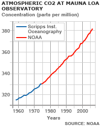 A grafikon meggyőzően mutatta s bizonyította be a Föld légkörében levő szén-dioxid tartalom rohamos növekedését a tudományos világnak.