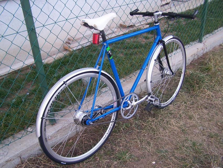 Most egy fekete BCA supra vázat pucoltam le, téli bringát szándékozom építeni belőle. Fix hajtás de valami rövid, 48/17 es áttétel, és elöl görgőfékes agy, esetleg agydimanóval..