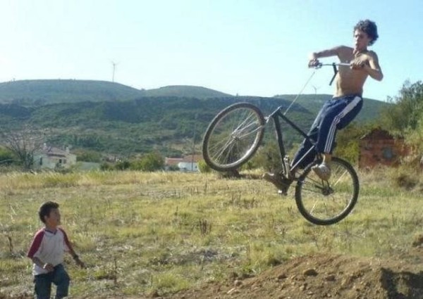 Jártam hasonlóképpen nagyon régen, mikor a Campingel tanulgattam ugrani, csak nekem nem stucnistól maradt a kezembe a kormány, hanem csak a kormány fele. Sőt, szarabb esetem is volt csak az már bmx-el, mikor is egy 40 centis virágágyásra ugrottam fel, csak hát az első kerekem úgy gondolta, hogy ő most márpedig szabad életet fog élni és elhagyta a biciklit repülés közben.