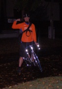 A nyeregcsövemen 10 LED, a nyereg alá barkácsolva 5 LED világít. És az én bicajom is úgy veri vissza a fényt, mint neszeé.