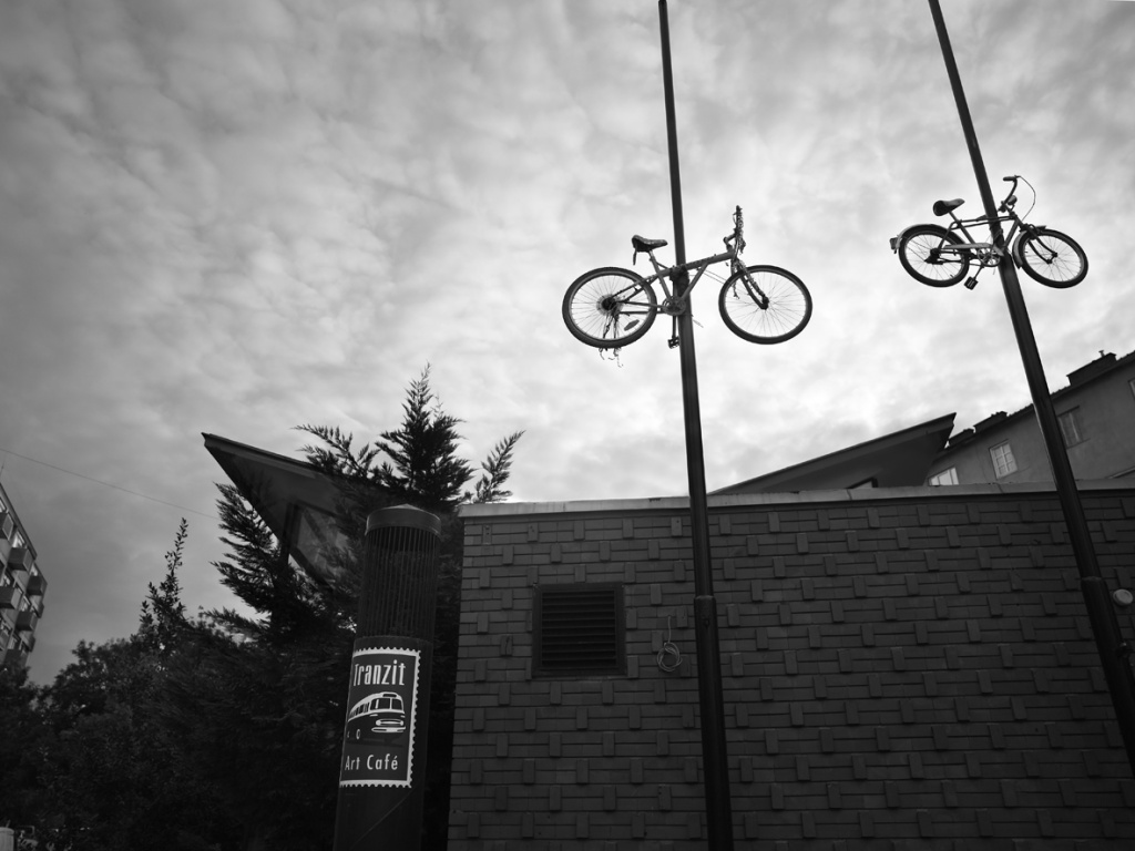 Biztosan a házmester panaszkodott, hogy folyton csak emelgetik a bringát, aztán leverik a lámpákat. :)