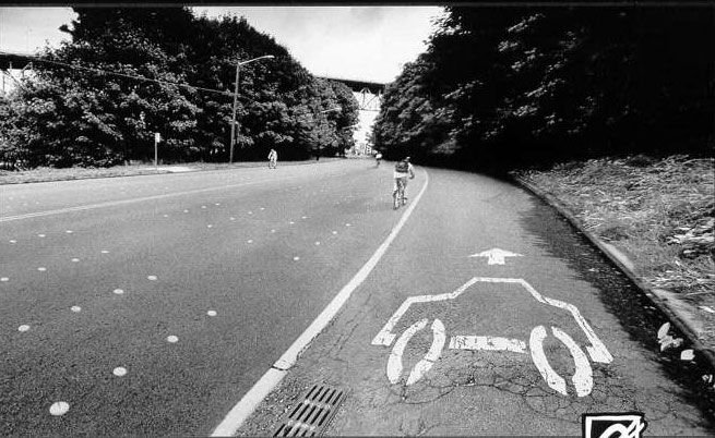 Ez a kép teljesen hiteltelen. Nincsen egy darab parkoló bringa sem, főleg nem az autóssávon!