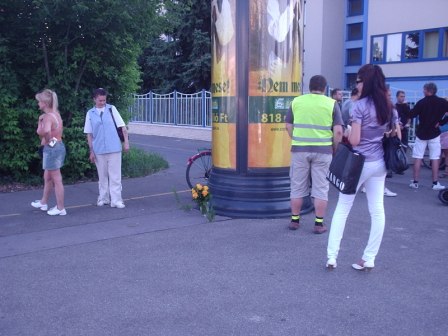 Aztán megérkezett a Népligetből induló csapat is és a virág elhelyezés, mécses gyújtást követően csendes beszélgetés kezdődött.