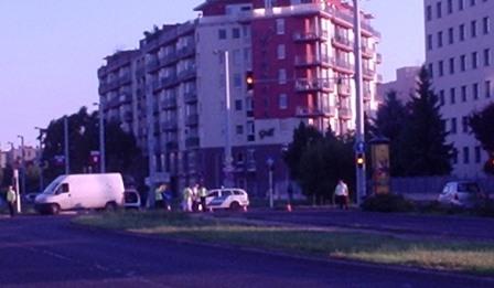 A T-Mobil épületénél, már lehetett látni, hogy a lámpák ismét sárgán villognak és kaotikus állapotok kezdenek ismét kialakulni a mintegy 20 perce elhagyott útkereszteződésben.