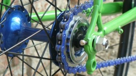 A Pepedálnál egy kék-zöld bringacsodára lettem figyelmes és nem állhattam meg kérdés nélkül, kinek/minek készül a járgány (mert az látszódott rajta, hogy nem "csakúgyból" van ott).