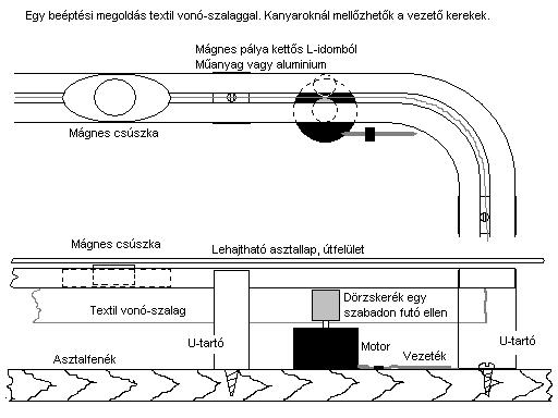 Elég lenne, ha az utca alatti részen kis motorok által hajtott kerekeken mozgatódna a mágnes, kereszteződésben alkalmas terelőelemekkel, csak nem értek hozzá, így nem tudom, a mágnes mennyire zavarná az elektromotorokat. Az áramot felső, alsó vezetékből kaphatná szerintem. Végülis majdnem mozdony, csak kisebb, vagyis az én fejemben is hasonló volt, mint amit leírtál. Kérdéses lehet a vezérlés, biztos van olcsóbb, mint minden egységbe, egy távirányítót berakni...