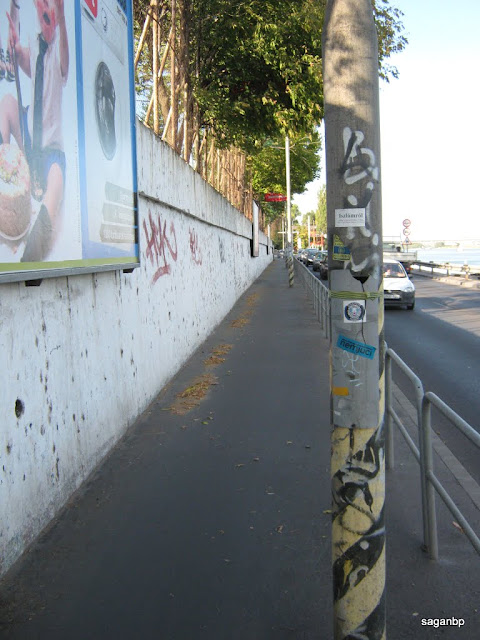 Az oszlopok bőven elférnének "a kerítés" túloldalán is, van ott annyi hely és máris elférne egymás mellett két bringás kényelmesen, plusz, ha akad gyalog, még az is.