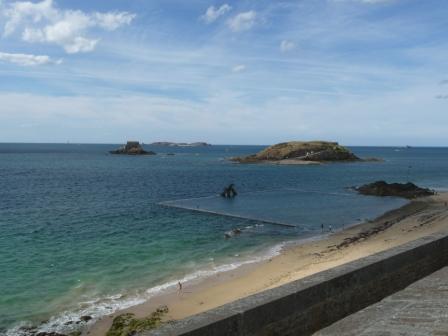 Két kis sziget van a közelben, és az egyikre apály idején ki lehet sétálni egy keskeny földnyelven. De most nem volt alkalmas a vízállás, és maradtam helyben. A nagyobbikon, a Grand Bé-n, nyugszik Chateaubriand, az író.