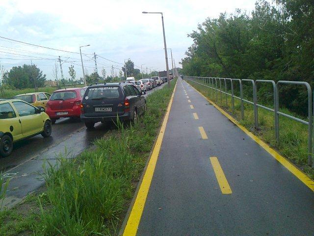 Autó nem megy kerékpárúton... ...mint tudjuk. Tehát ezek az autónak látszó tárgyak nem lehetnek mások, mint mesterségesen épített akadályok abból a célból, hogy a helyi triálosoknak/BMXeseknek legyen hol edzeniük. Értesítette már őket valaki? Biztosan örülnének egy kis gyakorlási lehetőségnek...