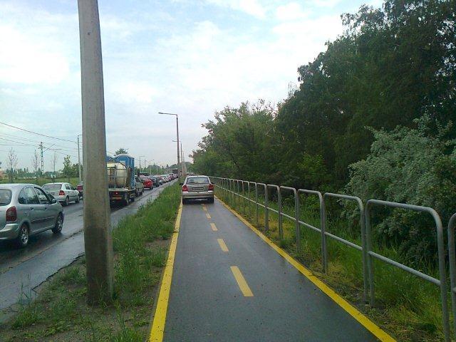 Az alábbi képeken, két gépjárművezetőt sikerült megörökíteni egy tagtársnak, a nemrégiben átadott,csepeli Weiss Manfréd út mellé épített kerékpárúton. Az ezüstös Opel vígan halad a kerékpárúton, a sötét színű ételfutár pedig a fényképezés hatására húzódott le a kerékpárútról.