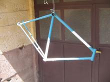 Harmadik lépes természetesen a fémig pucolni a vázat: ehhez megint csak bátyám szolgáltatta az eszközt, ki nem találjátok, kromofágot :D Most, hogy old szkúl békebelit vagy modern uniós fost, meg nem mondom (de tippem szerint az utóbbit, a palackjából ítélve). A kromofágot nagyjából 30°C-ban májusi melegben alkalmaztam, kb. 30 percet várva felvitele után, meglepve tapasztaltam, hogy ráncos rajta a festék réteg és szinte fémig hatolva puhította fel azt. Szépen neki is ugrottam egy általam csak kaparónak titulált szerszámmal amit még Írországból hozott tesóm. Olyan gyönyörűen adta magát az egész festék, hogy tényleg öröm volt dolgozni vele. Kivéve a muffolásokat ahol mindig kicsit kapargatni kellett, de Isten nem véletlenül adott nekünk több eszet, mint egy tyúknak, így fogtam és újra ecseteltem az illesztéseket és újból vártam. Így összesen háromszor ecseteltem be a muffokat és végül közel tökéletes eredményt kaptam :) De azt is ide írom, hogy a kapargatós munkában szerepet játszott még egy drótkefe és egy fogkefe is az alaposság kedvéért :D És itt kell még megjegyeznem, hogy basszus a forrasztások, olyan gyönyörűen mutatnak egy nyers vázon, hogy kedvem lett volna csak úgy lelakkozni az egészet :)