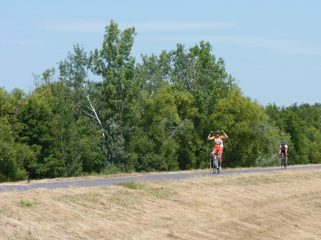 Mire feldolgoztam, hogy, hát ezt az erőt kár volt kipumpálni, addigra már az eredeti program is újra indult és vissza szélárnyékba. Ez ment némi helyezkedéssel egészen Lónyáig ahol töltésről le és falvakon keresztül vissza a töltésre. Itt amint lekanyarodtunk én ismét elk*rv... izé elcsábultam. Sprint 52km/h bumm és húzzunk innen. Ahha persze, de még mindig nem vagyok egy Sagan, hogy egyedül egy ekkora távot szökésben töltsek. Well... O.K. programot vissza alaphelyzetbe. Megint...