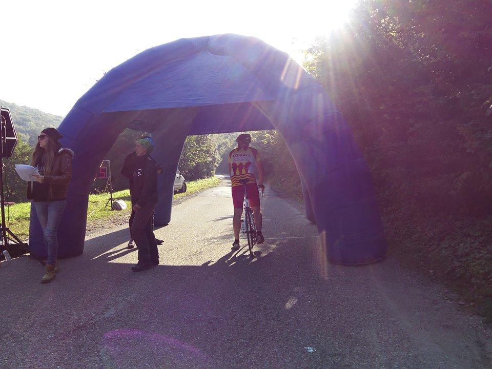 Érkezéskor átvettük a rajtszámokat és a rajtcsomagot, majd a bükkszentlászlói kereszteződéstől kocsival elmentünk a célig, mivel a kocsit célszerűbbnek láttuk ott letenni. Most öten voltunk a KKB-tól két debreceni vendég versenyzővel. Ugyanis elhívtam Teslér Atit és Balut, hogy jöjjenek, nagyon jó lesz. Mivel ez egy hegyi időfutam volt, egy perces eltolt rajttal, így szépen összekapartuk magunkat és visszamentünk a rajthoz, azt még tudni kell, hogy 5,3km-en 330m szintemelkedést kellett leküzdeni. Aki járt már Bükkszentkereszten az tudja, hogy a faluban van egy laza emelkedő olyan 13-15%-os, ami valahogy így fest: / . Szóval ezen felkapaszkodtunk amiben olyan vicces volt, hogy egy picit vizes lett a gumim és az rögtön ki is pörgött. Szóval legurultunk a rajthoz. Itt 10-től kezdődött a rajtoltatás, elsőként Baluval 10:17-kor majd Ati 10:23-kor, aztán jó magam 10:41-kor, közvetlenül utánam Józsi 42-kor, majd Joci 11:07-kor.