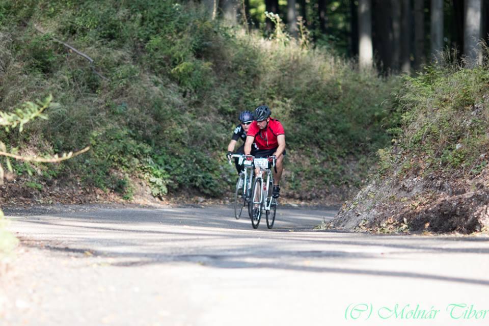 -Ó jó lesz az! (vagyis ahogy ez a én kis tájszólásommal a fejemben hangzott: Aóú jaóú lesz az) . -és ilyen ütemben folytattam is 3 perc 50 másodperc körül értem fel az első kilométerre. Itt-ott rémlett, hogy lesz egy kis lapos rész ahol tudok "pihenni", és a pulzus nem esett, csak a tempó lett egyre karcsúbb hol 13, hol 15km/h. Ám közben megvilágosodtam: Ugye az ember ösztönösen a legkönnyebb megoldást keresi, mint az életben, úgy az áttételekben is, de ez egy versenyen nem fizetődik ki, itt folyton a maximumot kell nyújtani, ha az óra ellen versenyzel. Szóval amikor azt hiszed, hogy most jó, akkor válts egy nehezebb fokozatra és az lesz a jó! Ez volt a taktika, illetve, hogy a 34-26-os áttételt csak akkor használjam, ha már magam verem a szöget a koporsómba. Szóval zömében inkább 34-21-et hajtottam, itt-ott belekacsintva a 34-19-be, meg egyszer vagy kétszer 34-17-be, de volt 34-23 is. Nagy történések nem voltak, utol értem pár versenyzőtársat akik szintén mindent beleadtak.