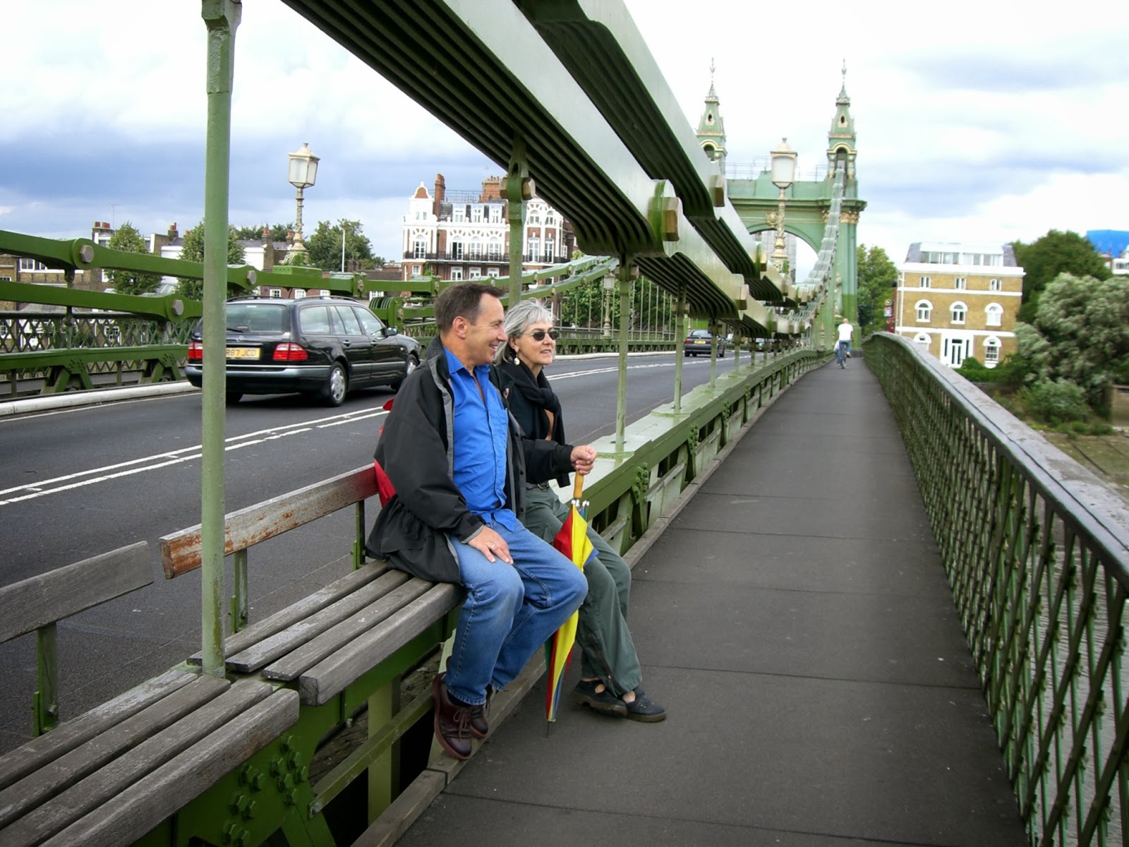 Példa a londoni Hammersmith híd padjai, amiknek kissé eltér az elhelyezésük ugyan, de megvilágítják az elvet.